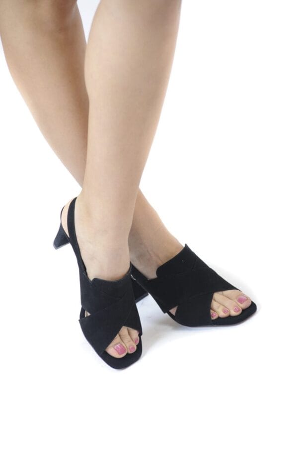 Γυναικείο Πέδιλο με Μεσαίο Τακούνι και Χιαστί Λουράκια