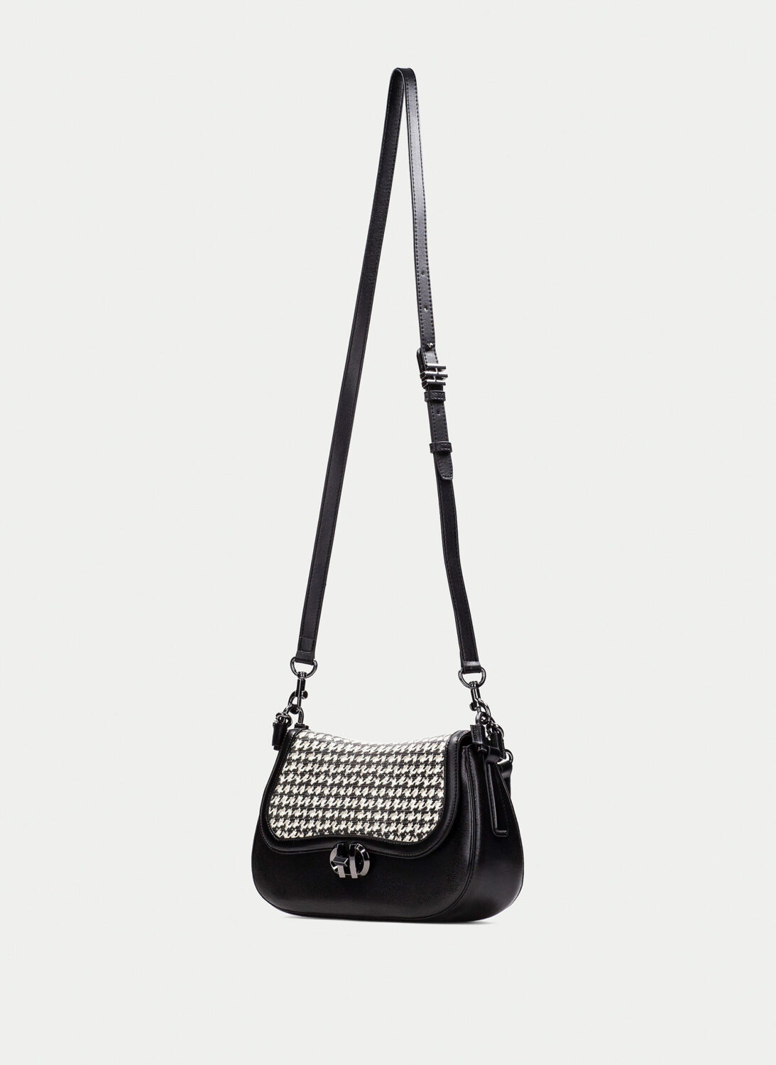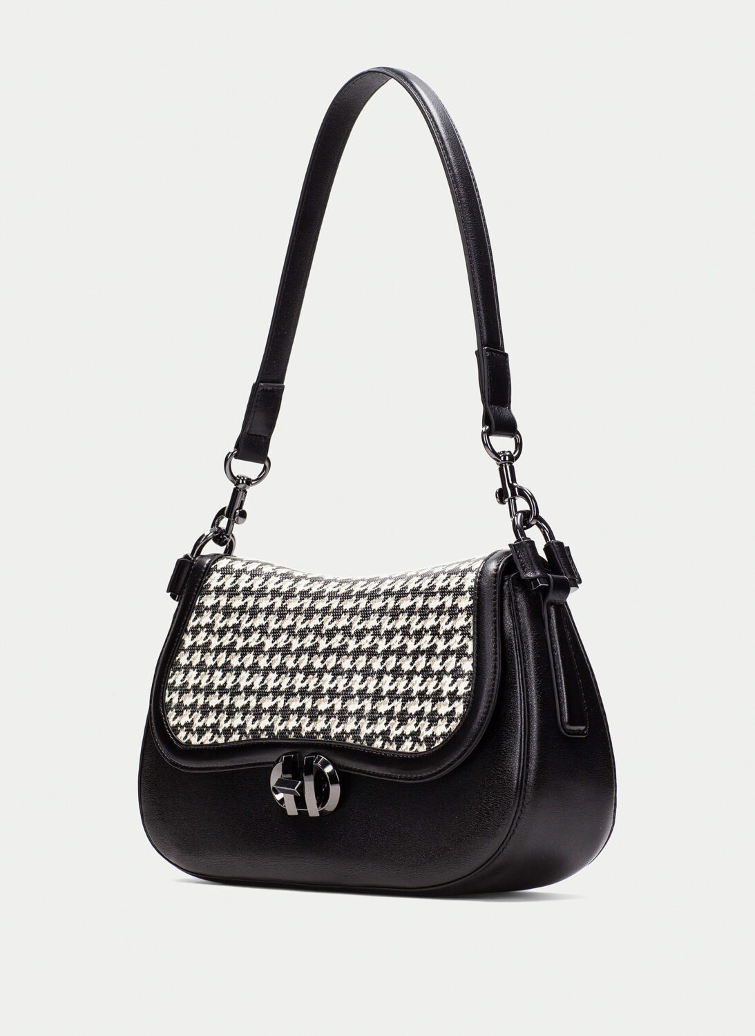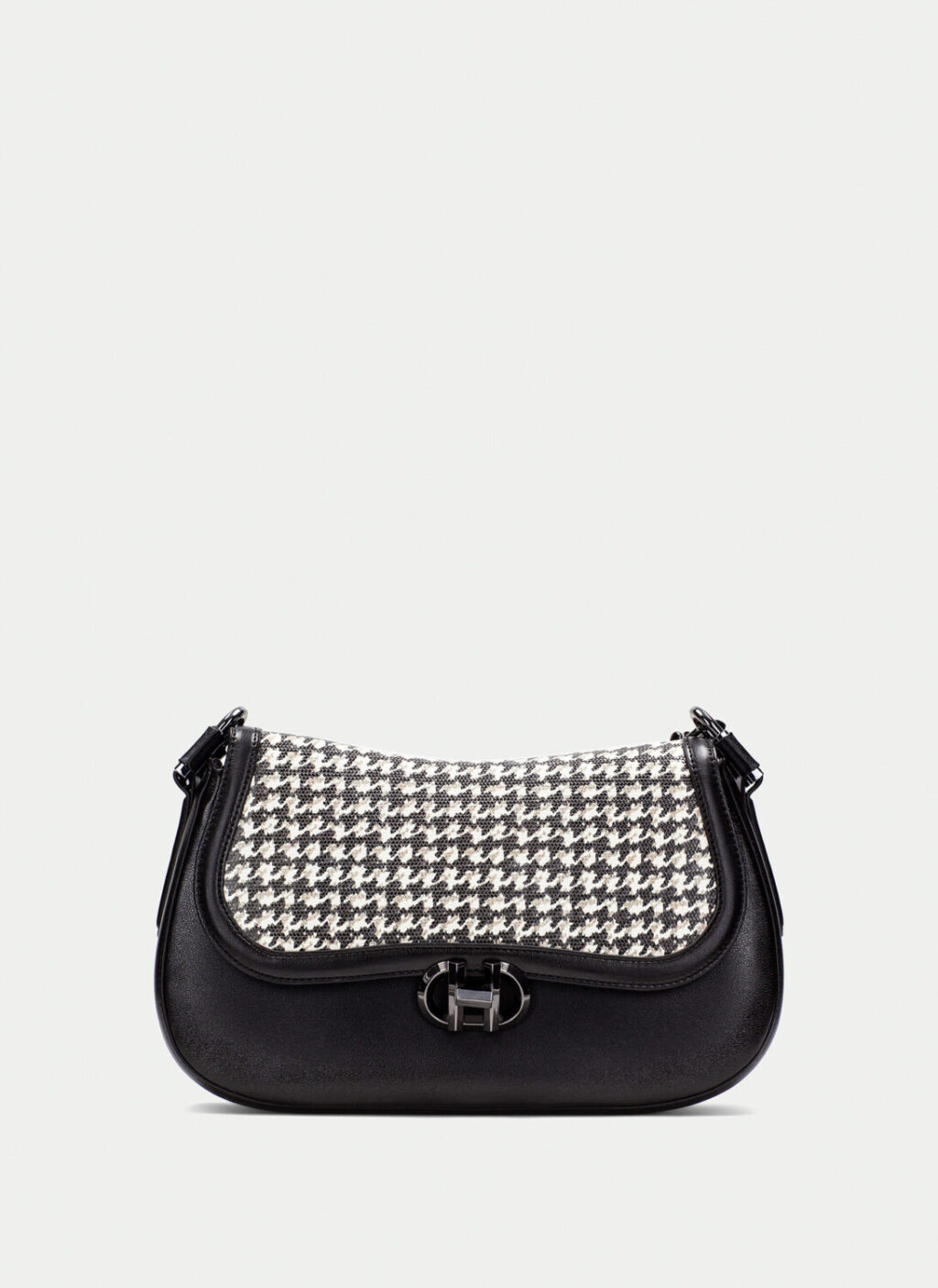 Τσάντα σε σχήμα ημισελήνου με κλείσιμο με πτερύγιο με τυπωμένο μοτίβο τουίντ.