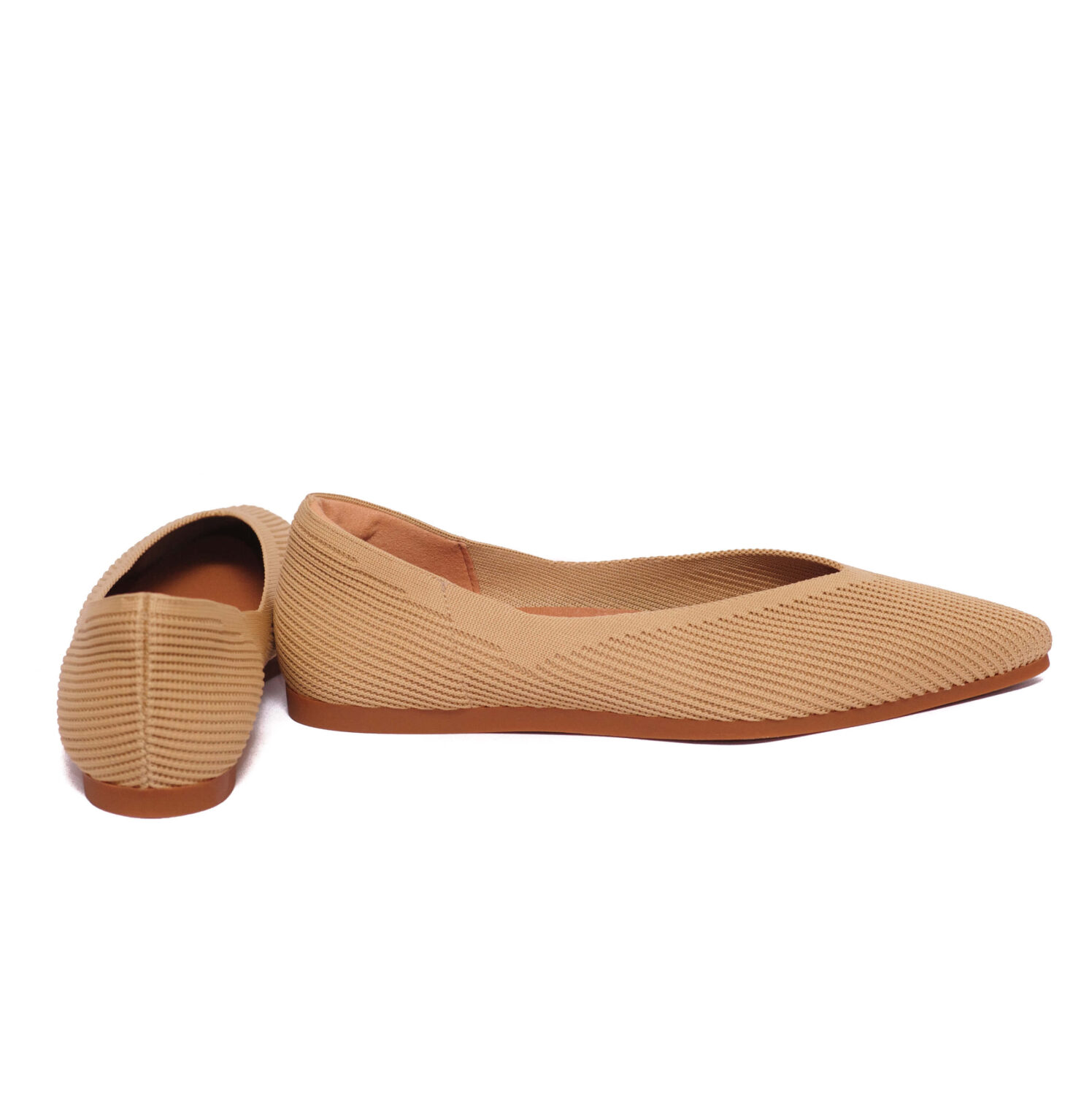Camel Μπαλαρίνα με ίσιο τακούνι 1 cm και βιώσιμο μπεζ ύφασμα.