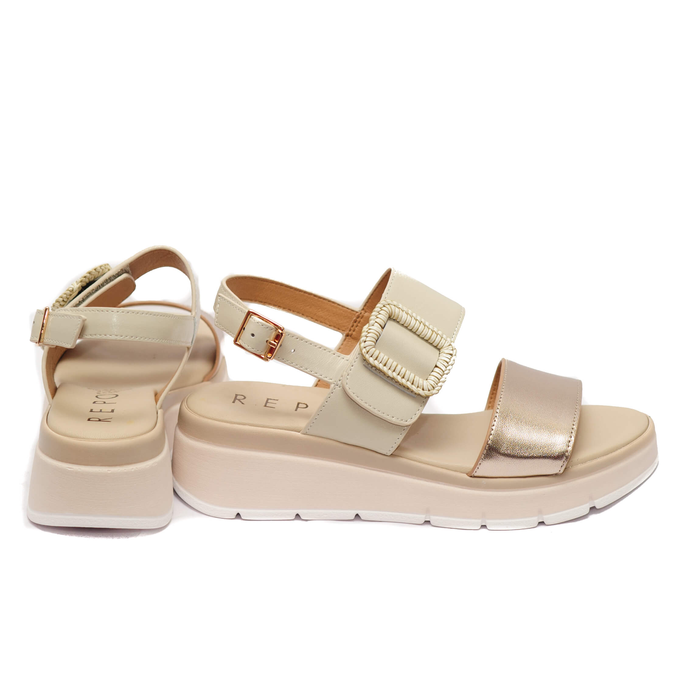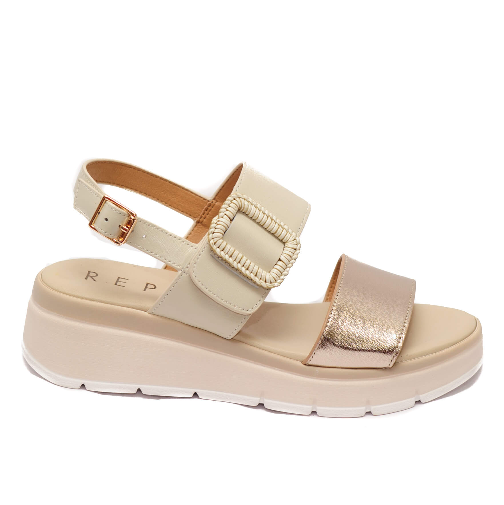 Repo Μπεζ Δερμάτινα Πέδιλα Platform με Αυτοκόλλητο
